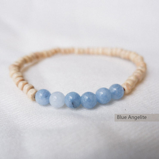 Blue Angelite + Moonstone Stone Bracelet by Andrea